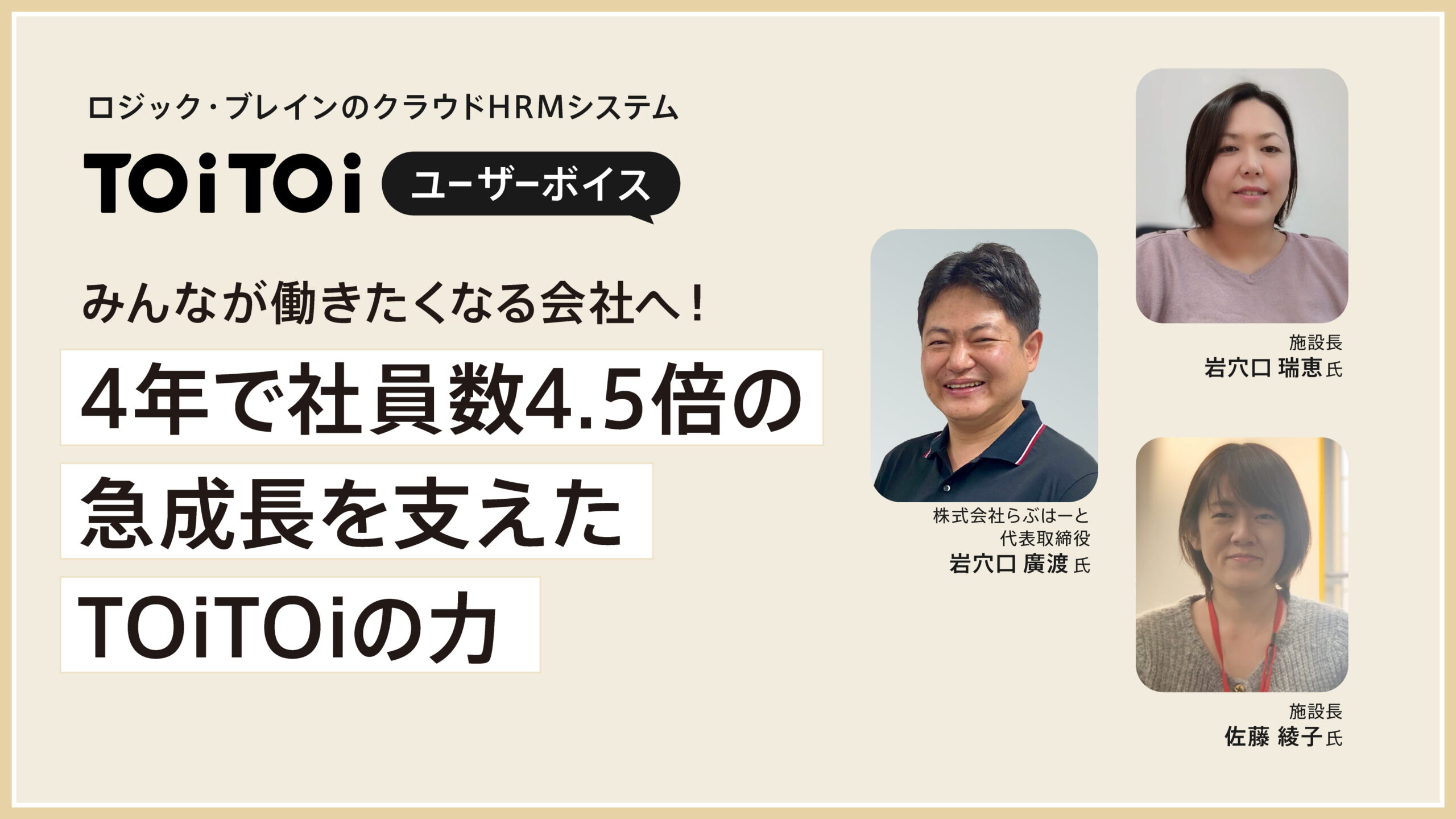 【ユーザーボイス】みんなが働きたくなる会社へ!4年で社員数4.5倍の急成長を支えたTOiTOiの力 株式会社らぶはーと