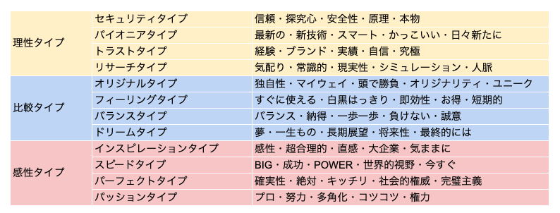 TOiTOiの独自分析により、対象者を理性タイプ・比較タイプ・感性タイプの3つのタイプに分類します。それぞれに対応するコミュニケーションの違いについて解説します。