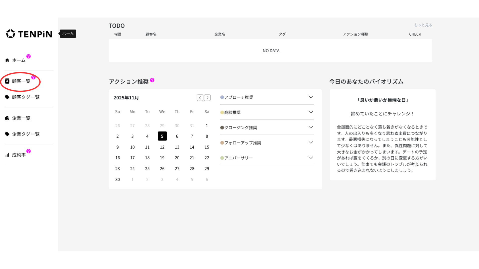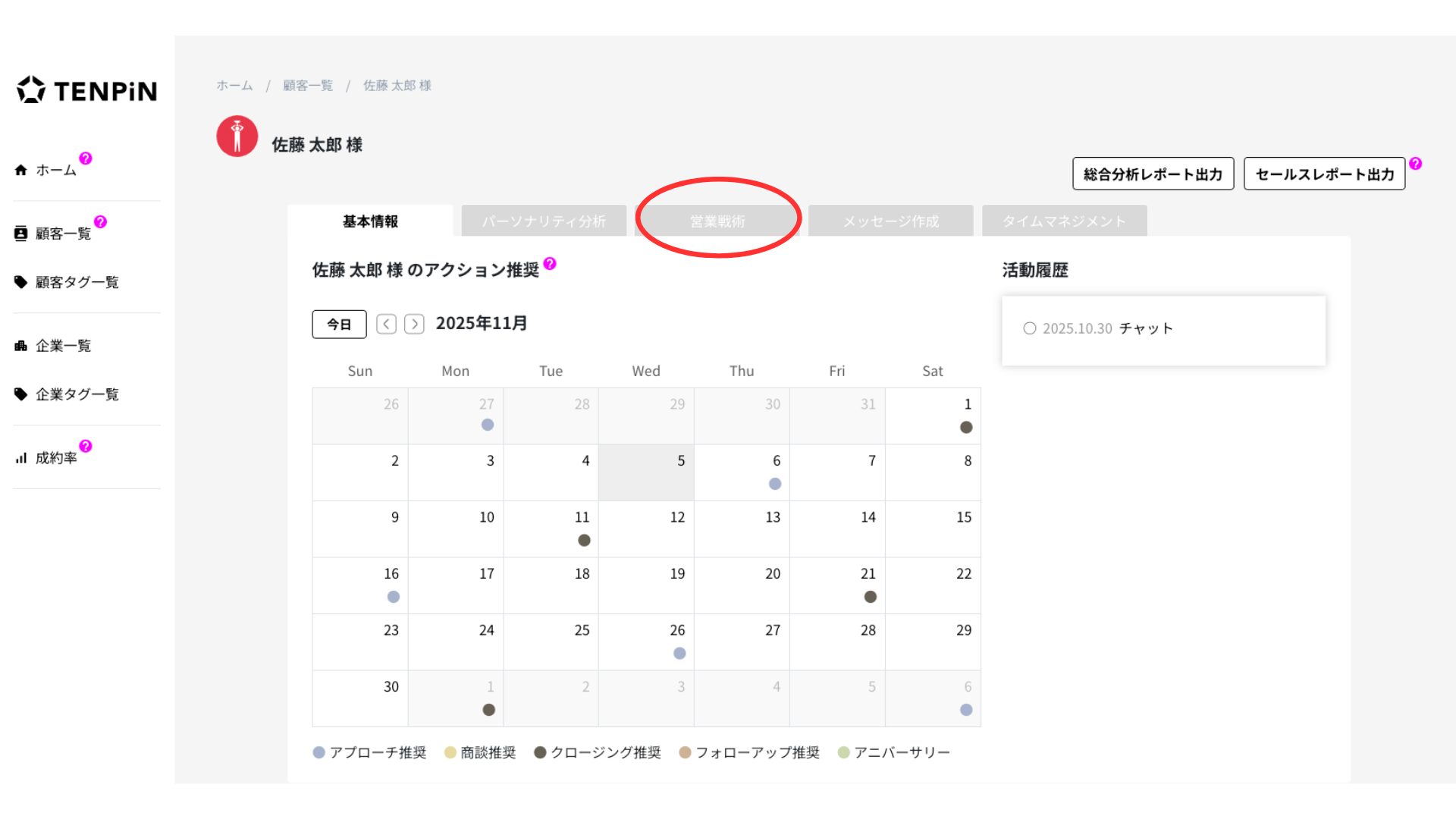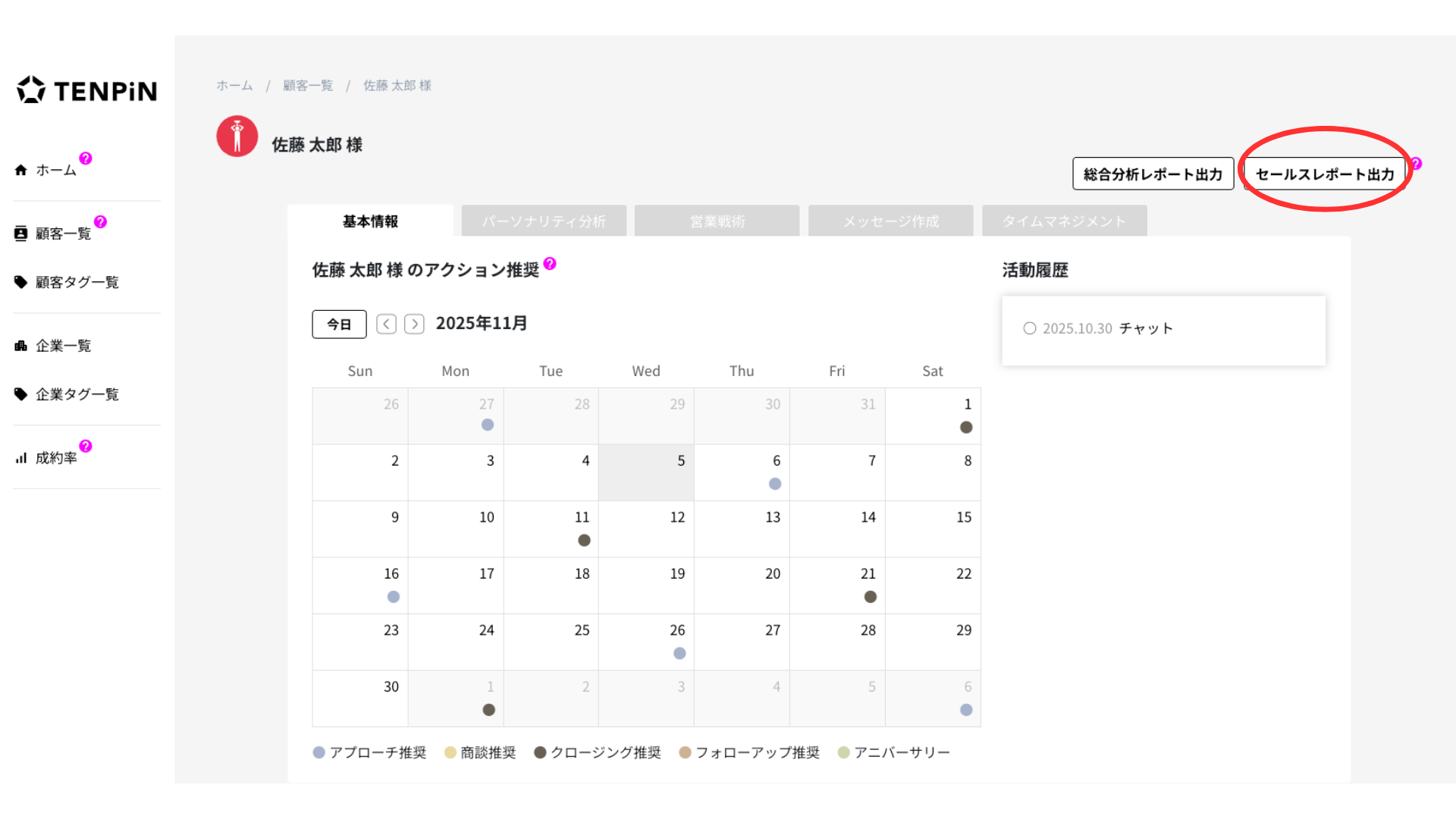 TENPiNのセールスレポート(パーソナリティ分析)は、顧客の生年月日から性格や意思決定傾向を分析し「どんな伝え方が響くのか」「どのタイミングで動くのか」をデータで可視化する機能です。