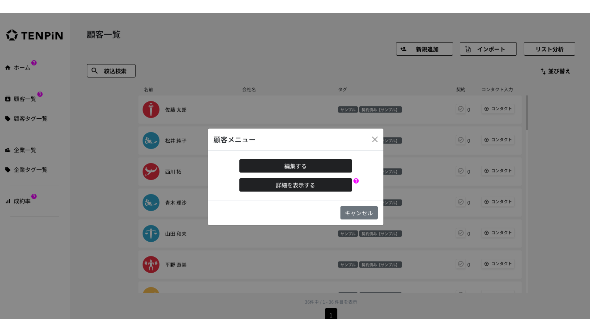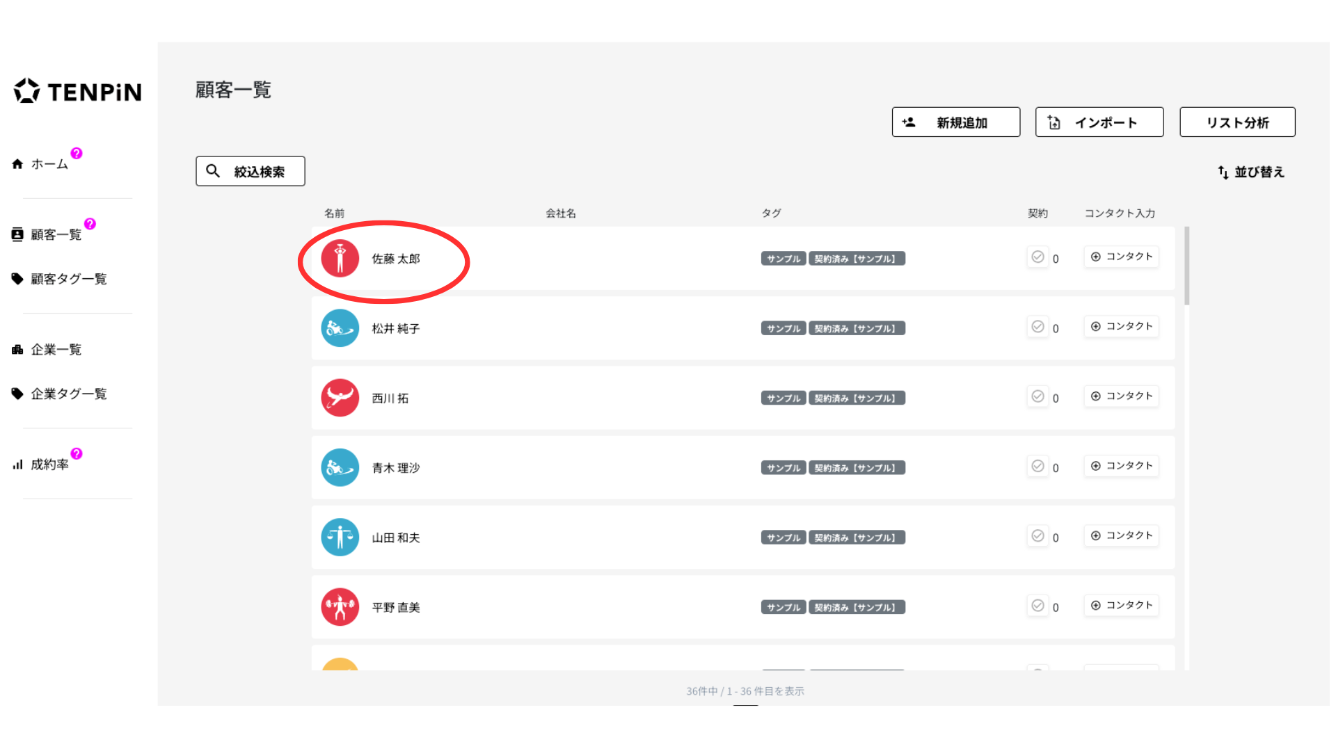 ※TENPiNに入力されている顧客情報は全て、AIで出力した架空人物のものです。