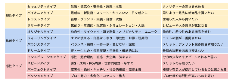 はやみ| TENPiNの独自分析により、理性タイプ・比較タイプ・感性タイプの3つのタイプをさらに細かく分類したものが12タイプです。各タイプの名称とキーワード及び消費行動の特徴は下記の通りです。