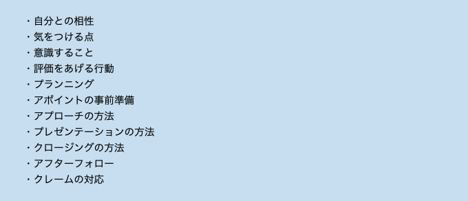 また、やってはいけない対応や事前に準備すべき資料なども具体的に提示されるため、営業の質を大幅に底上げすることができます。