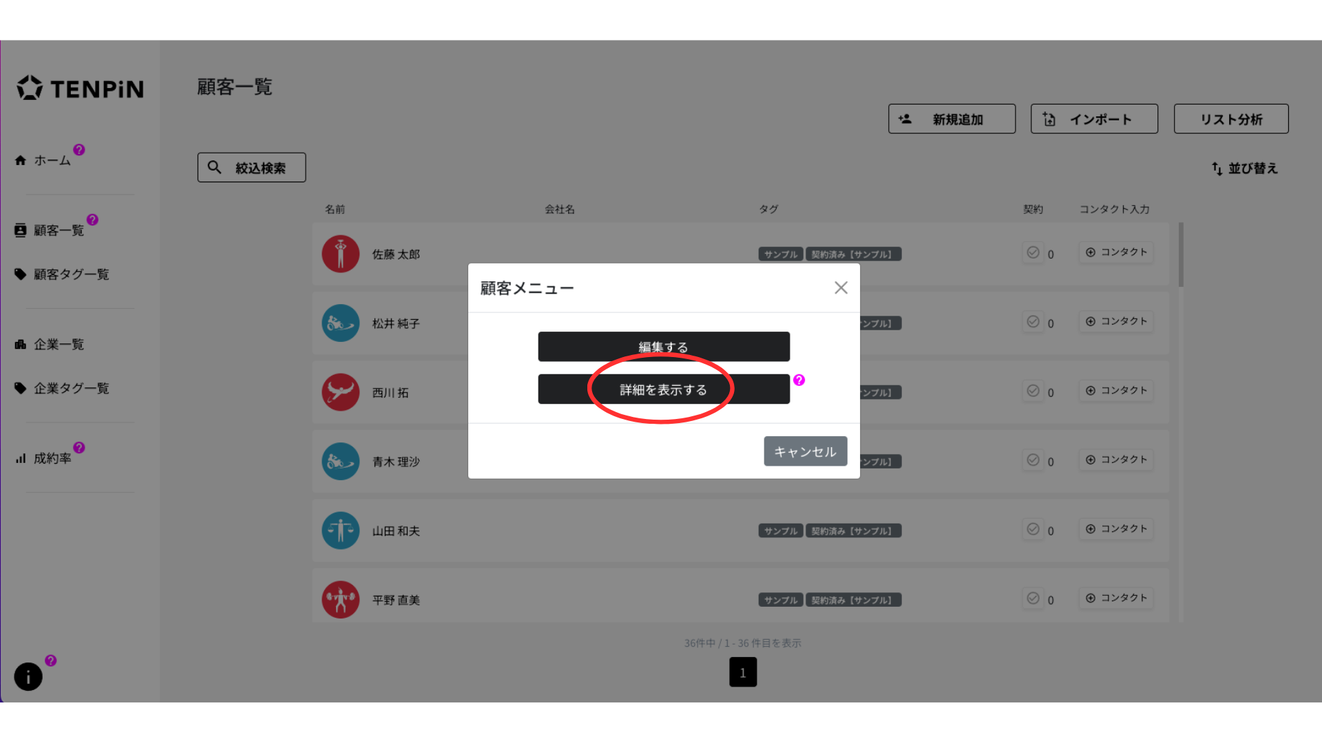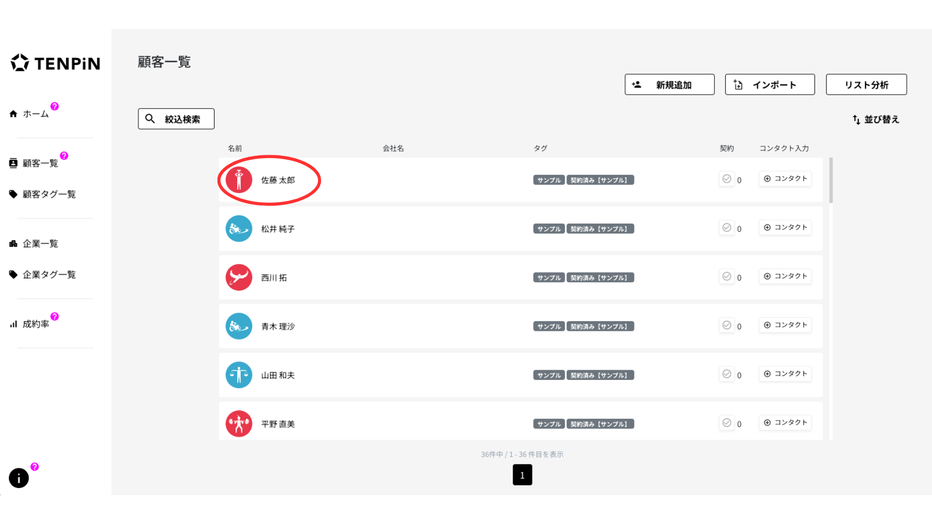 ※TENPiNに入力されている顧客情報は全て、AIで出力した架空人物のものです。