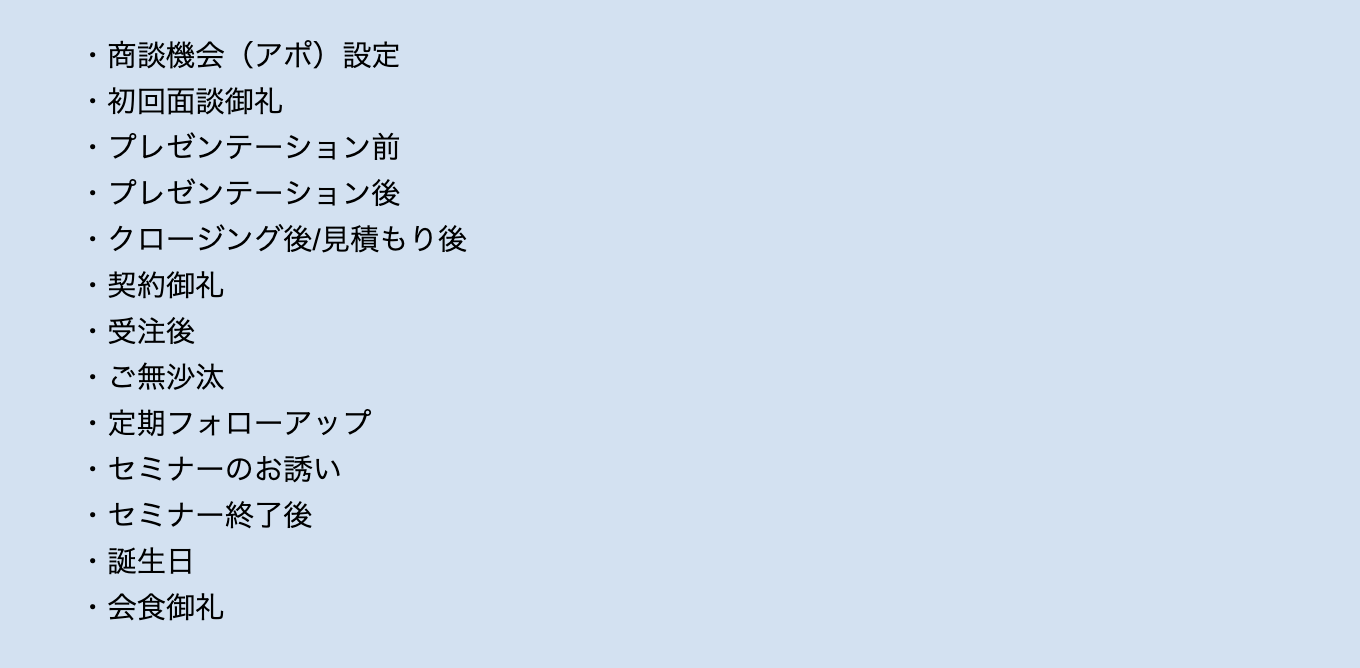 例えば、相手のタイプに合わせた言葉選びや、顧客のリズムに合わせたメールを送信することが可能になります。それにより受け取った側は「売り込まれている」ではなく「私の状況をわかった上で連絡してくれている」と感じやすくなります。